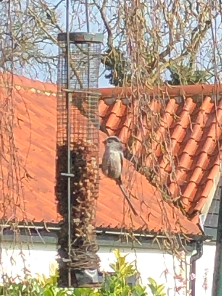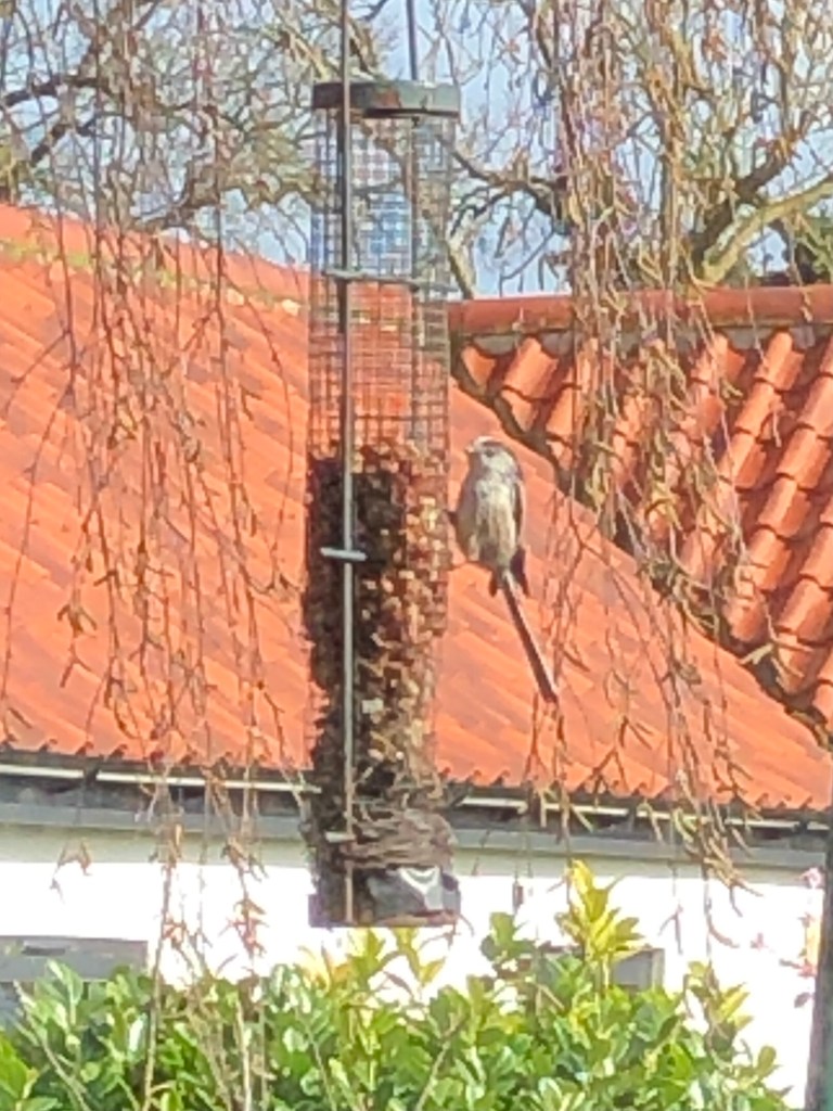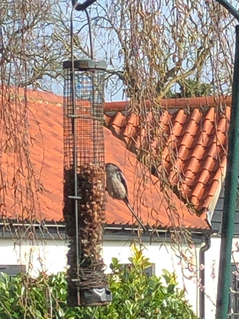 Unusually a solitary long tailed tit visited the bird feeder this afternoon. I have only seen them in small groups up until today.