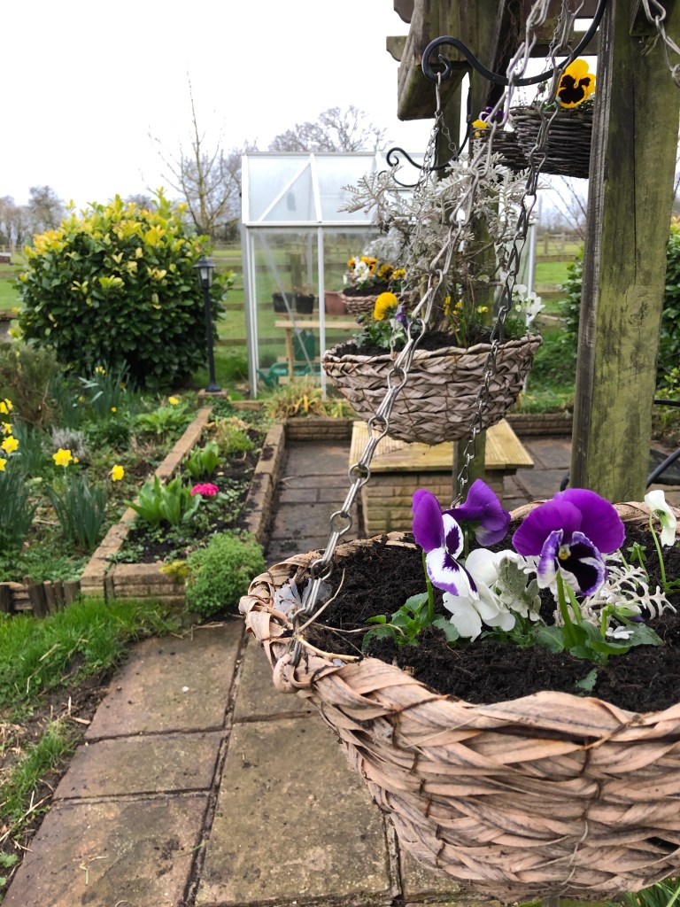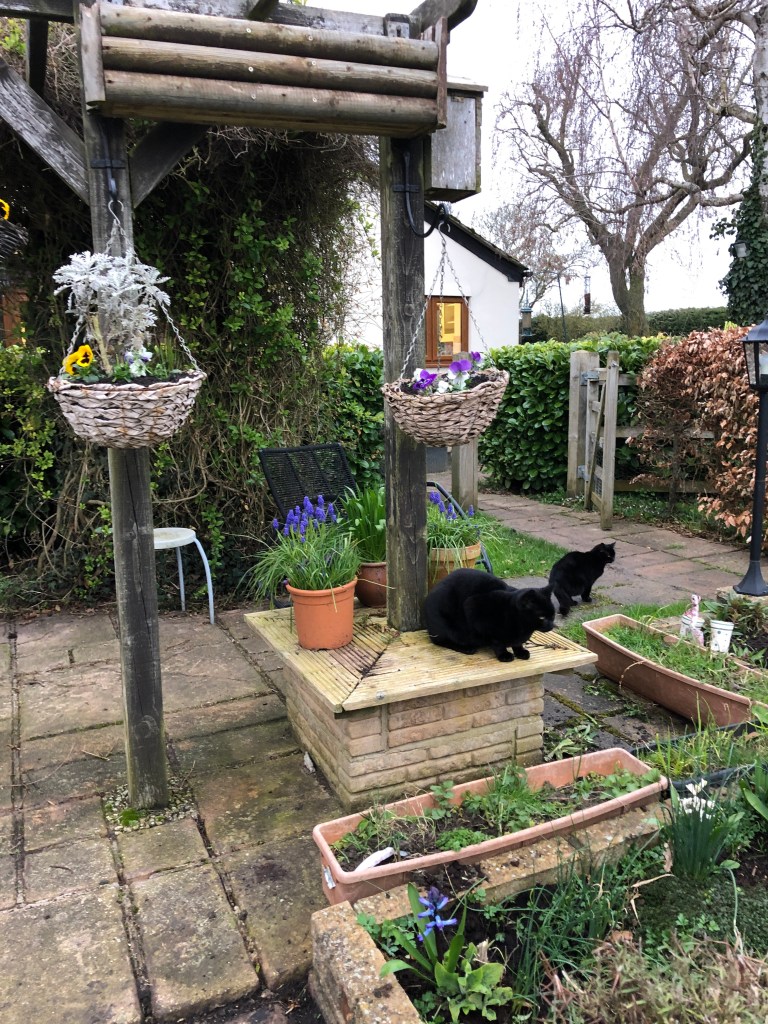 And finally, sitting quietly (near Mabel) in the pergola admiring the hanging baskets that Jeremy planted up today