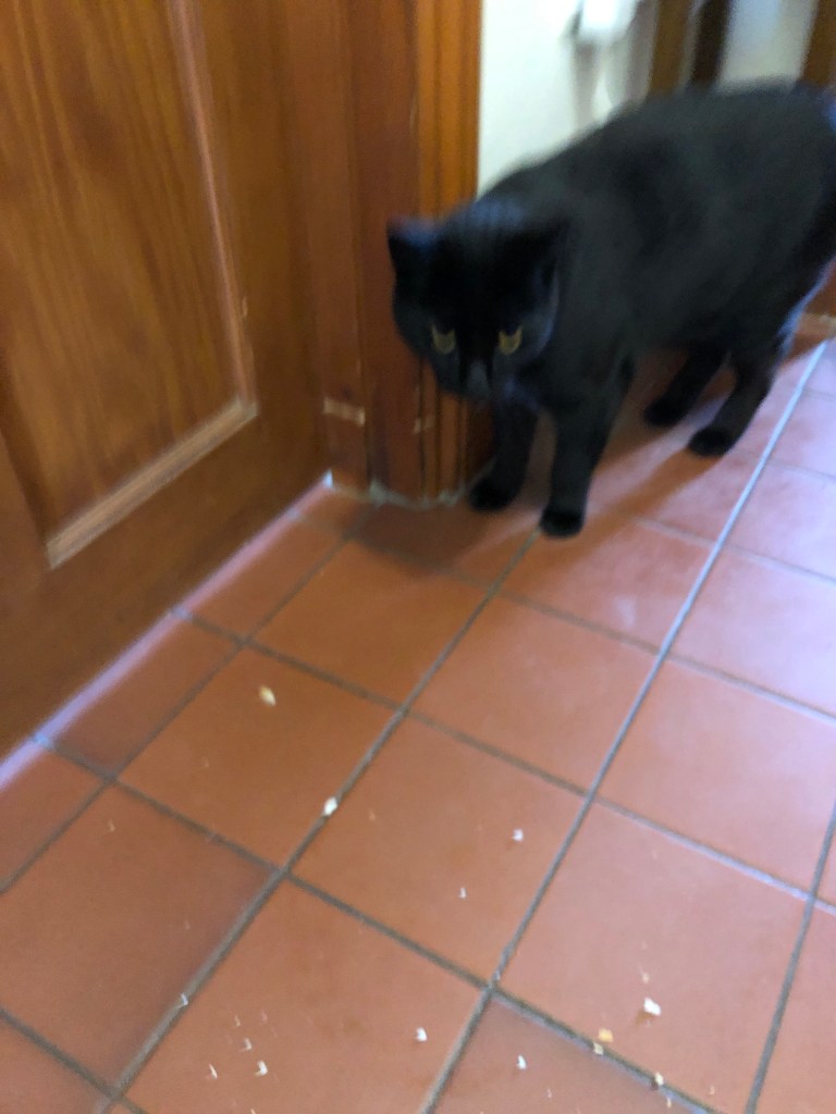 I opened the door and asked if anyone had been eating bread. No …….but then Michael said he had a sandwich in his rucksack and then we realised