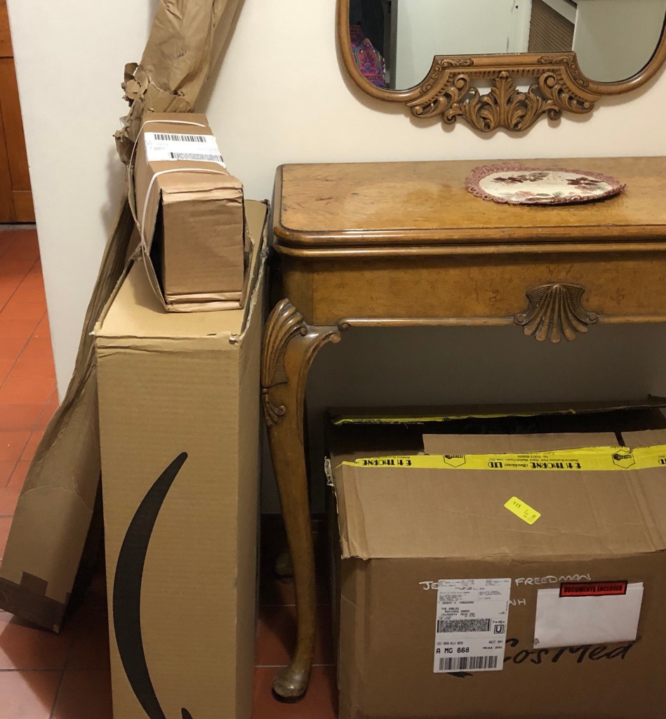 No wonder the shops are closing as many of us order more and more of our goods online. Today there were three parcels piled up in the hallway. It’s always a surprise as I usually forget what I ordered.