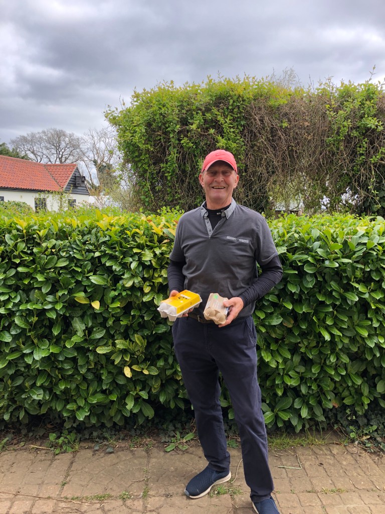 Chris collected 28 eggs to take to a local Primary school where his daughter in law works. They will put the eggs under a broody hen or in an incubator and the children will be able to wait and then watch chicks hatching