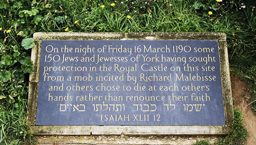 On March 16th 1190 the entire Jewish Community of York was wiped out in a horrific Anti Semitic attack at Clifford Tower – just one of a number of such atrocities that took place across Mediaval England at this time.