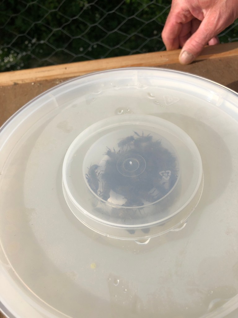 May 9, 2021 by gfreedman2013 The bees seem to have settled into their new home Jeremy has given them sugar water for “supper” We will put on our bee suits tomorrow and take a closer look. Share this: Share on X (Opens in new window) X Share on Facebook (Opens in new window) Facebook Like Loading... Related
