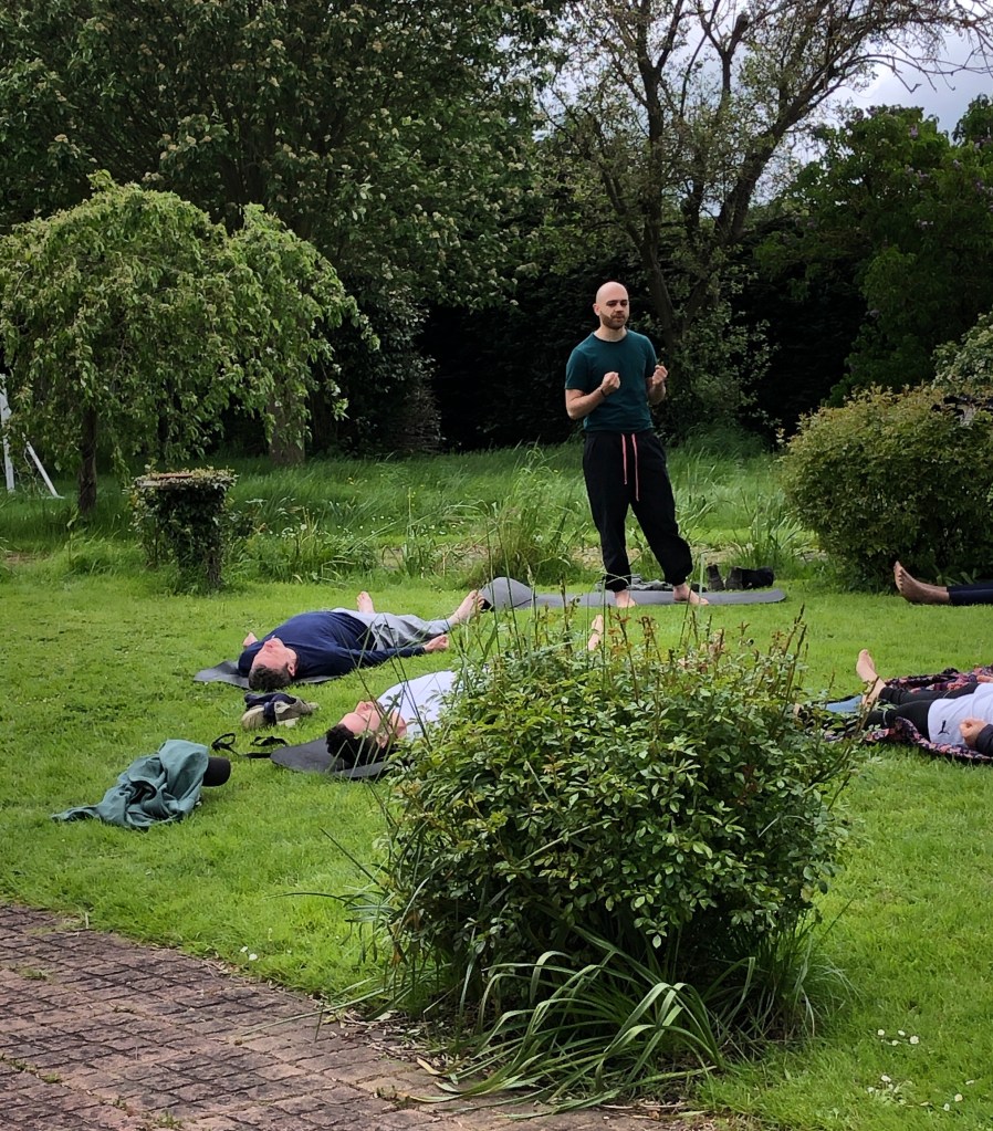 The youth group had a yoga class before a breakfast of shakshouka in the barn
