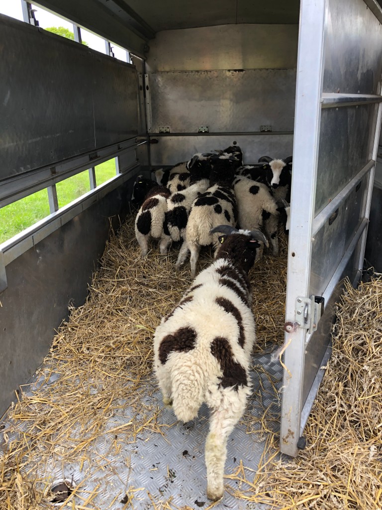 The youth group were packing up and writing in the guest book as farmer Dave arrived from Bosworth with his son who was driving a good sized trailer. We all worked at loading the lambs – who were very docile. The lambs are a present for Dave’s wife. I hope she enjoys them.