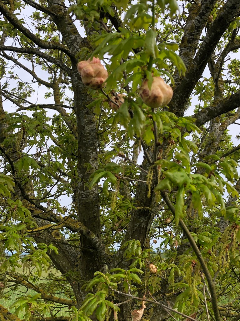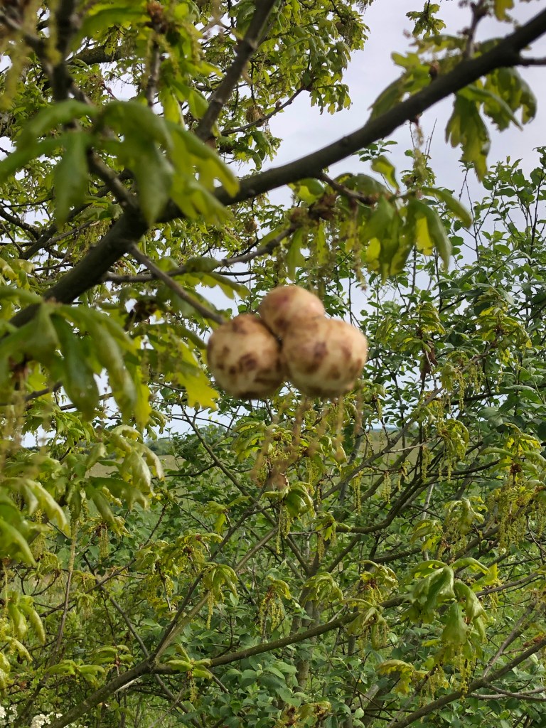 Along Mill Road is an oak tree covered in apples. They’re not the eating variety they are oak apples or galls which are created by the larva of a gall wasp injecting certain chemicals into the developing oak leaf bud.
