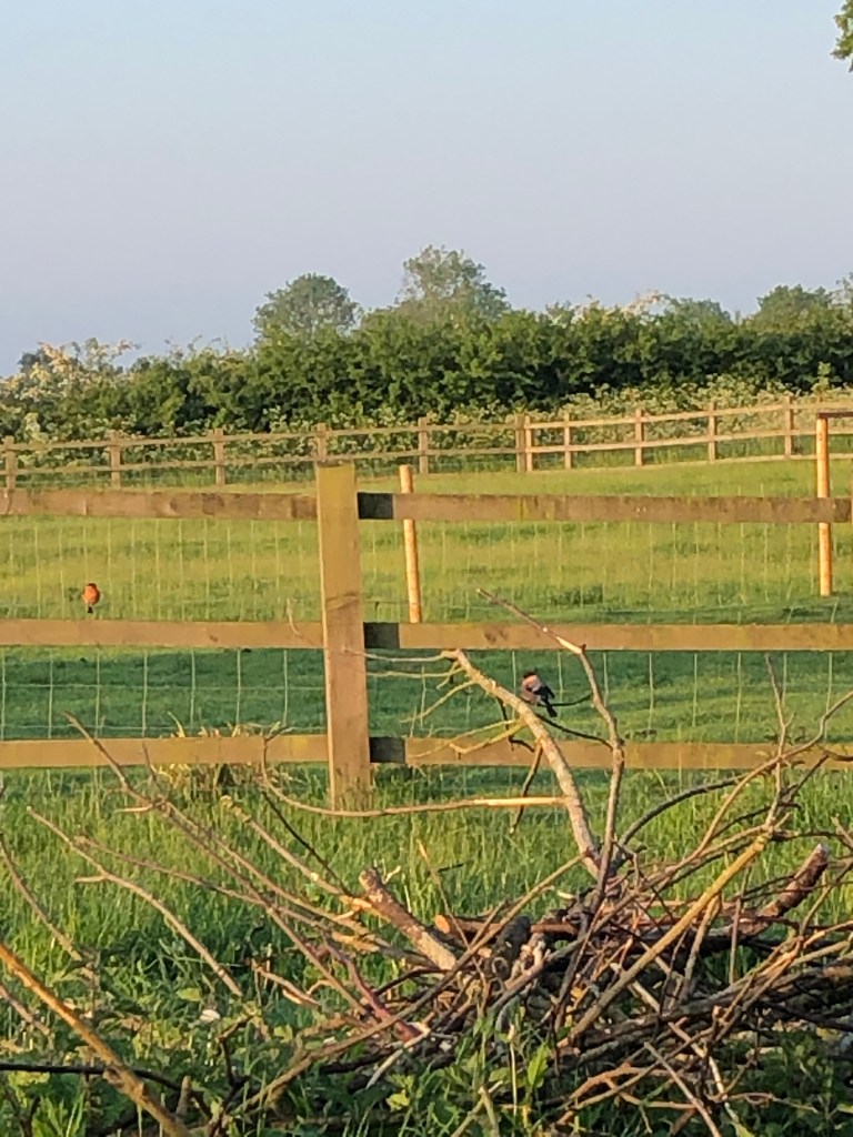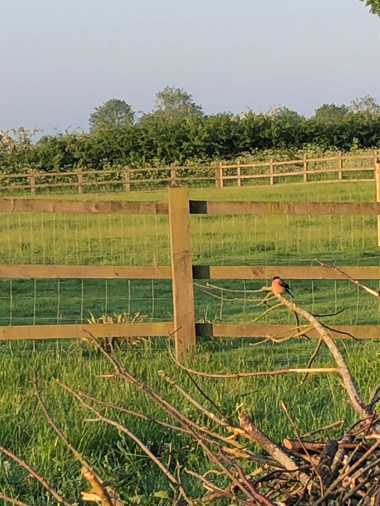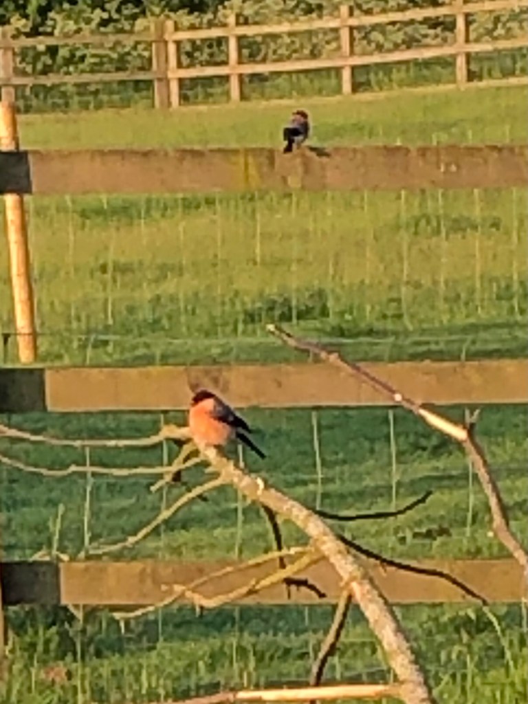 That woke me out of a tangled dream to which I had no wish to return. As a result I was out with the animals on a perfect June morning – before 6 am. And as a result of the early start I saw, in the paddock, my first ever pair of bull finches. Such a surprise and such a treat.