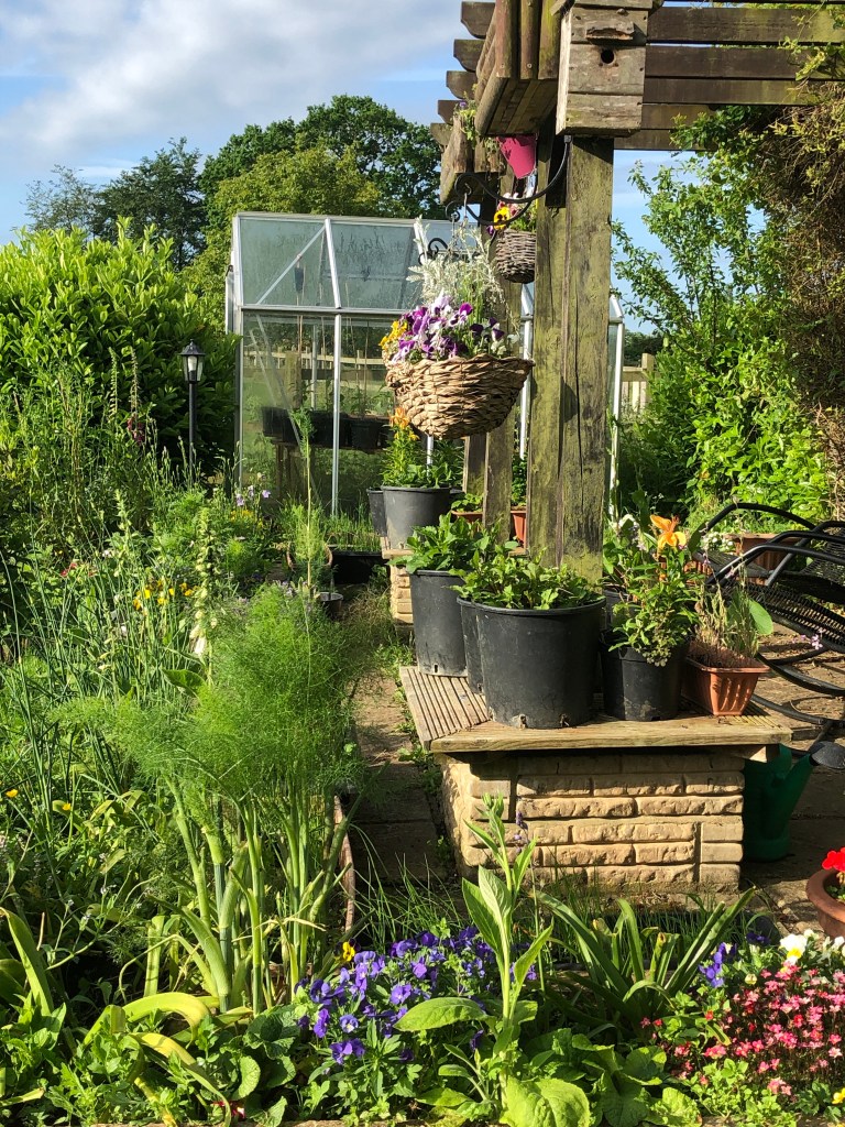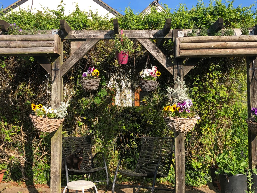 June 8, 2021 by gfreedman2013 It’s by no means all about the animals The flowers and herbs around and under the pergola Home grown ox eye daisies Hanging baskets A raised bed of onions Brussels sprouts Purple sprouting guarded by a scarecrow Pink currants waiting to ripen Share this: Share on X (Opens in new window) X Share on Facebook (Opens in new window) Facebook Like Loading... Related