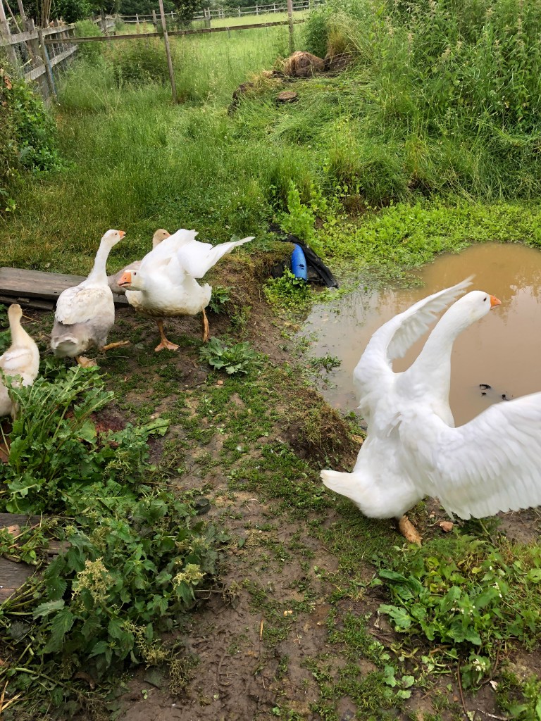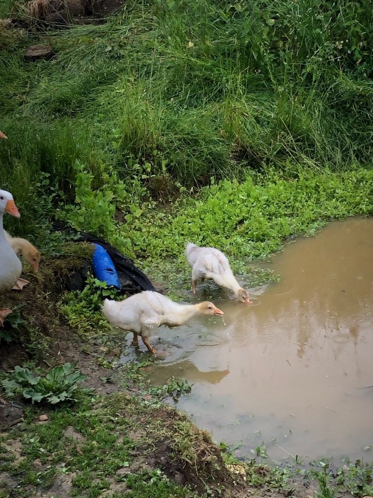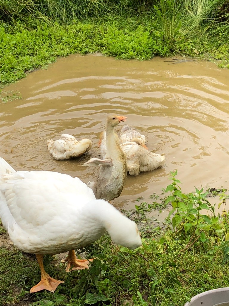 One thought on “The rain is filling the small pond and the goslings are learning to swim