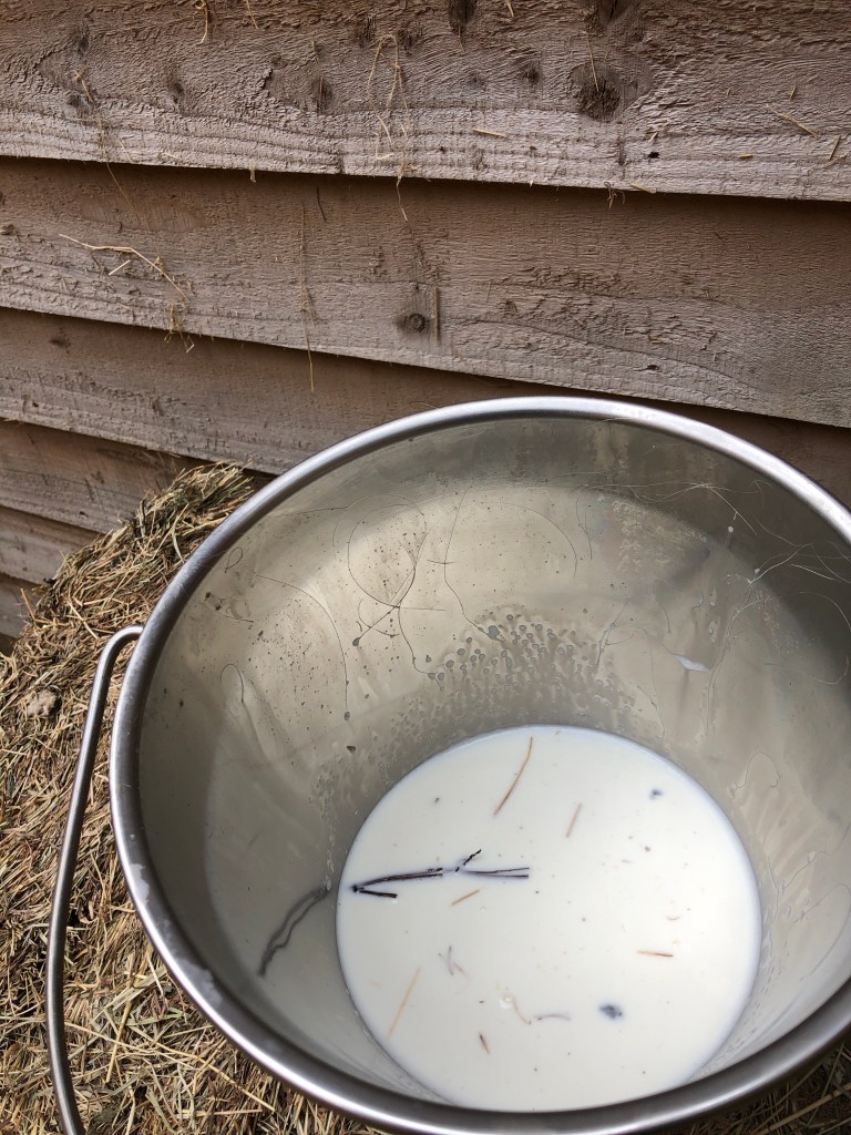 We weren’t intending to milk Willow until the kids are three or four months old but her udder is so lopsided that I decided to milk off the distended side yesterday evening. I them spoke to my goat guru in Honeydon and she suggested I have another go this morning to try and even up both sides of the udder.