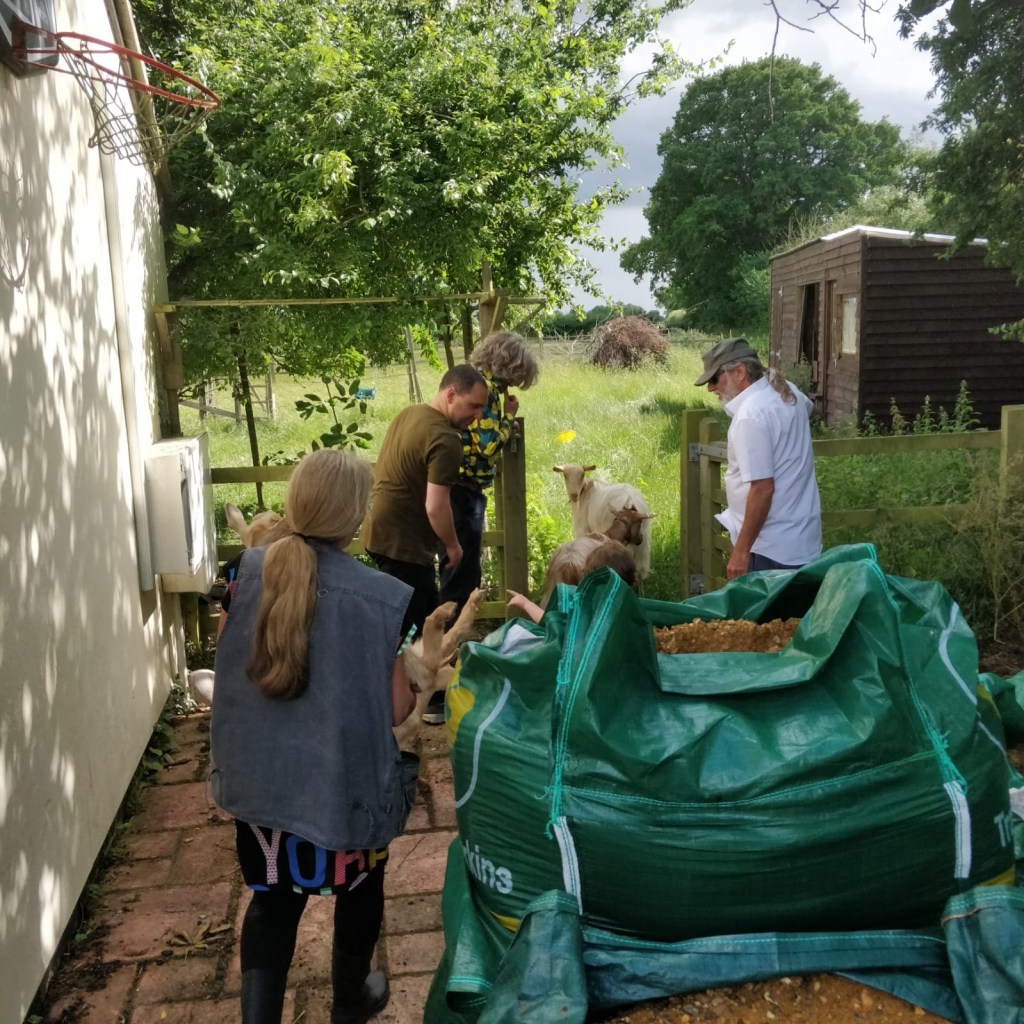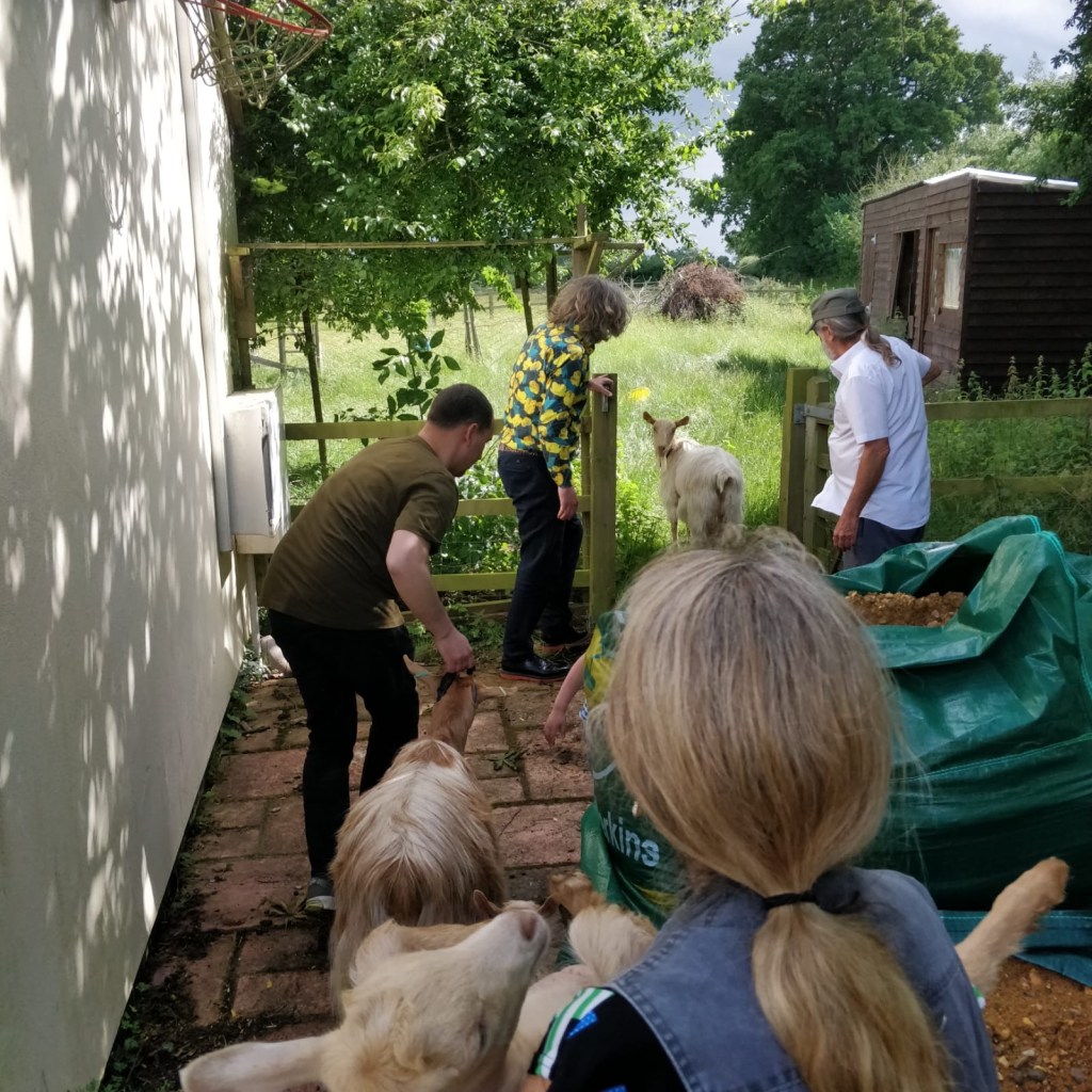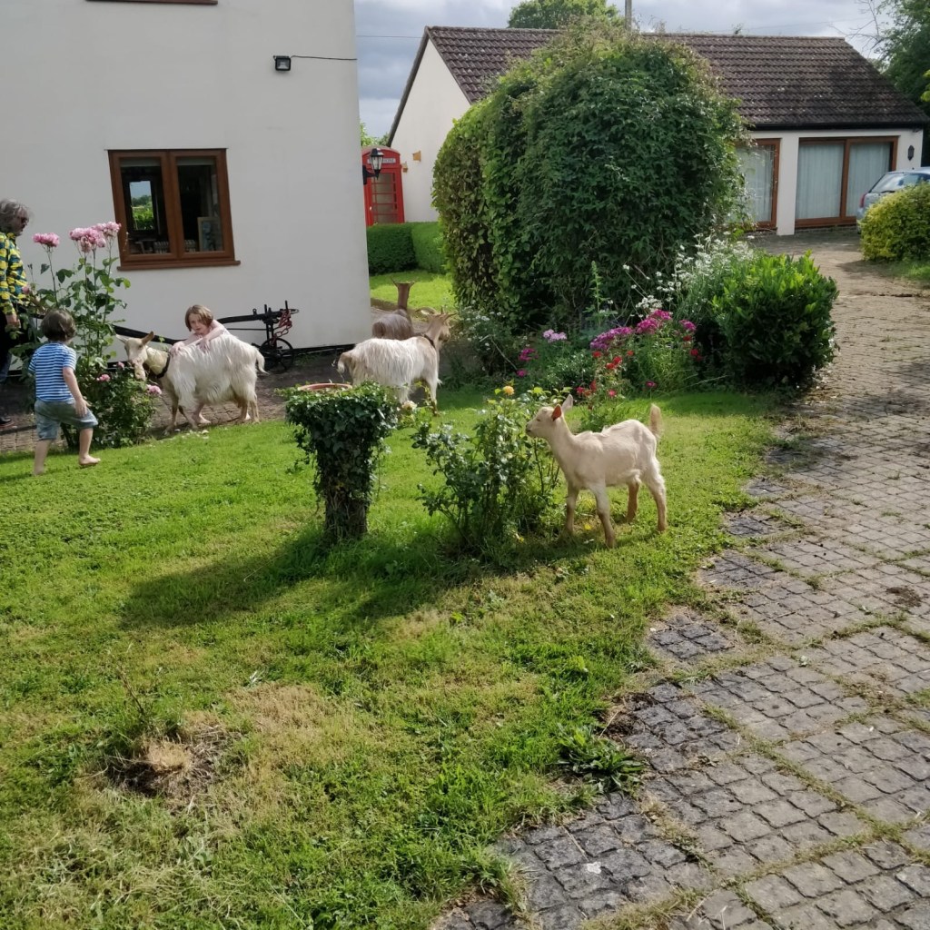 We were enjoying our pizzas and then fruit and jam tarts when suddenly one of the guests spotted a goat in the front garden. I yelled and everyone came running just before the goats began to eat the roses