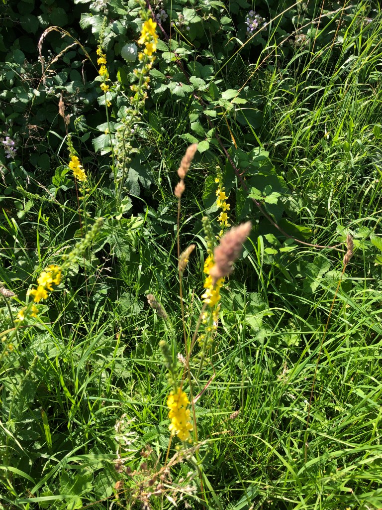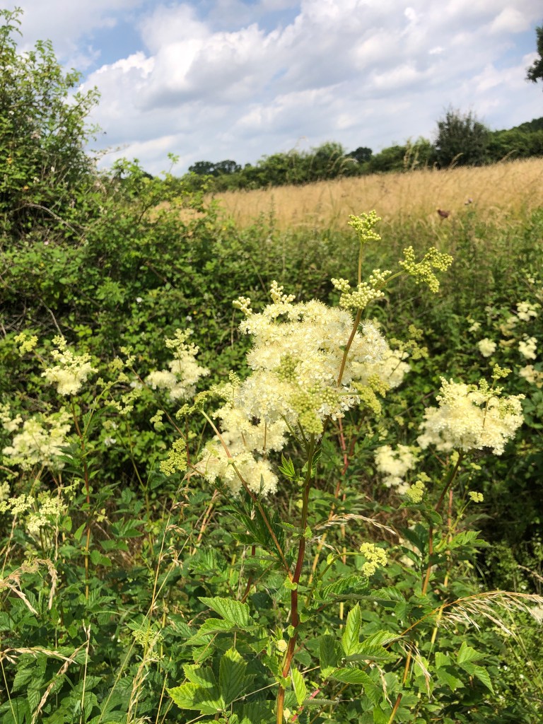 In Kate’s field a local contractor was cutting the hay which he will bale later in the week. It’s been an amazing year for hay (and much else besides). Click below