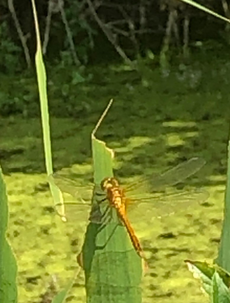 Dragonflies by a pond in a nearby field
