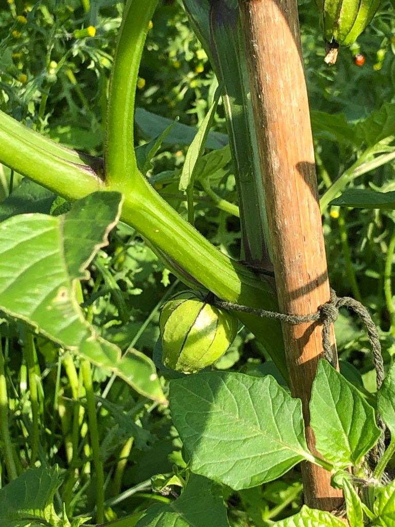 J didn’t grow tomatillos last year (a member of the physalis family of plants) but he had grown it successfully several years running. We make tomatillo salsa with the purple green fruits.