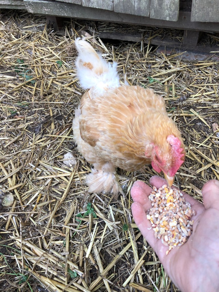 Lovely Lemon, our oldest Bantam hen, is the friendliest of all our birds