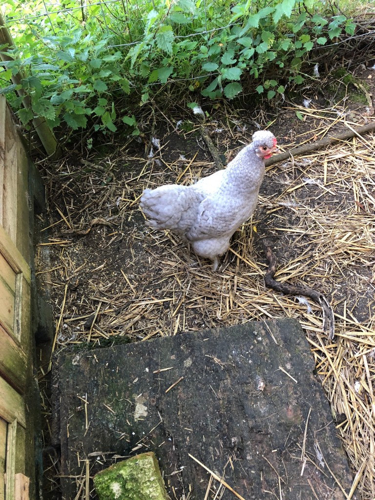 The Grey Bantam (who we returned to the paddock nearly two weeks ago) refuses to live with the other birds. During the day she stays under the hen house and only comes out when the others are sit up at night in the morning I see her and try to persuade her to stay out in the run but she won’t listen!
