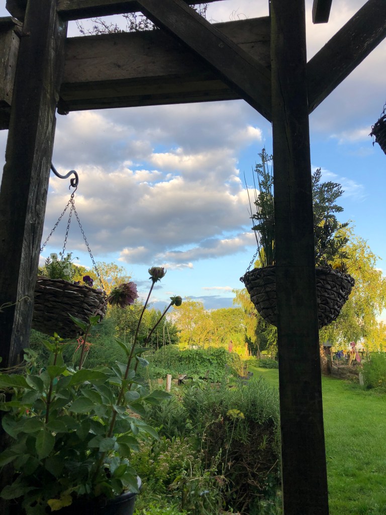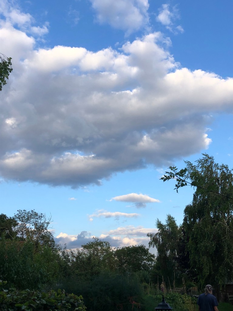 August 10, 2021 by gfreedman2013 Early evening – Sitting under the pergola enjoying the blue, cloud studded sky Share this: Share on X (Opens in new window) X Share on Facebook (Opens in new window) Facebook Like Loading... Related