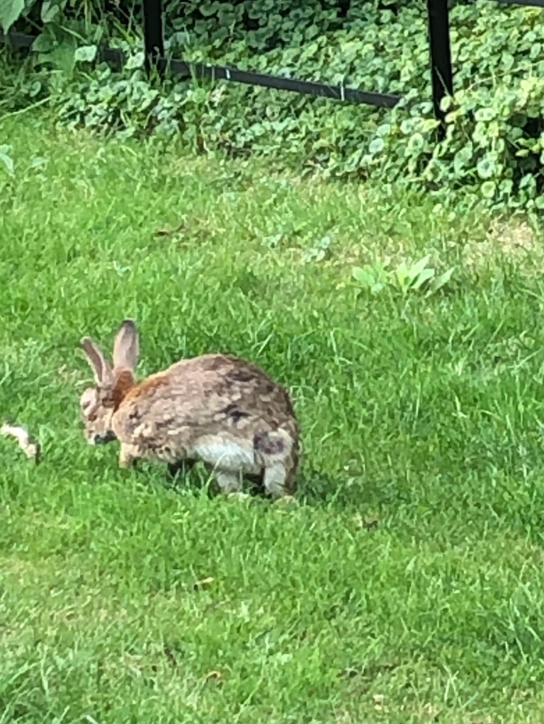 By nature wild rabbits keep their distance from human beings. If they don’t there is “something wrong”. This morning I walked down Channels End to visit a friend and deliver her a jar of honey. Just beyond their doorstep, on a grass verge was a rabbit.