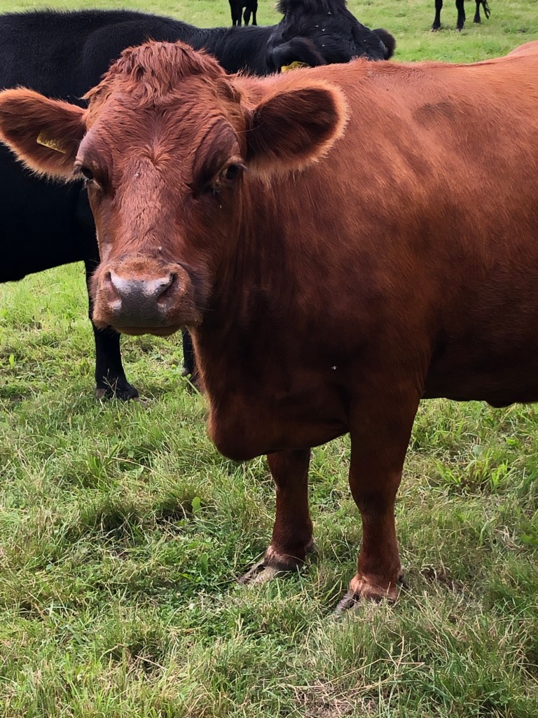And across the road our old cow Lucy (who we sold last summer) is visiting a bull. She came over to see me when I passed the gate – she definitely recognised me.