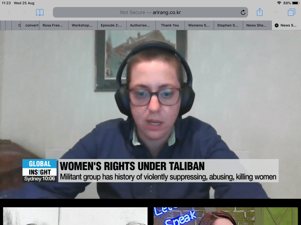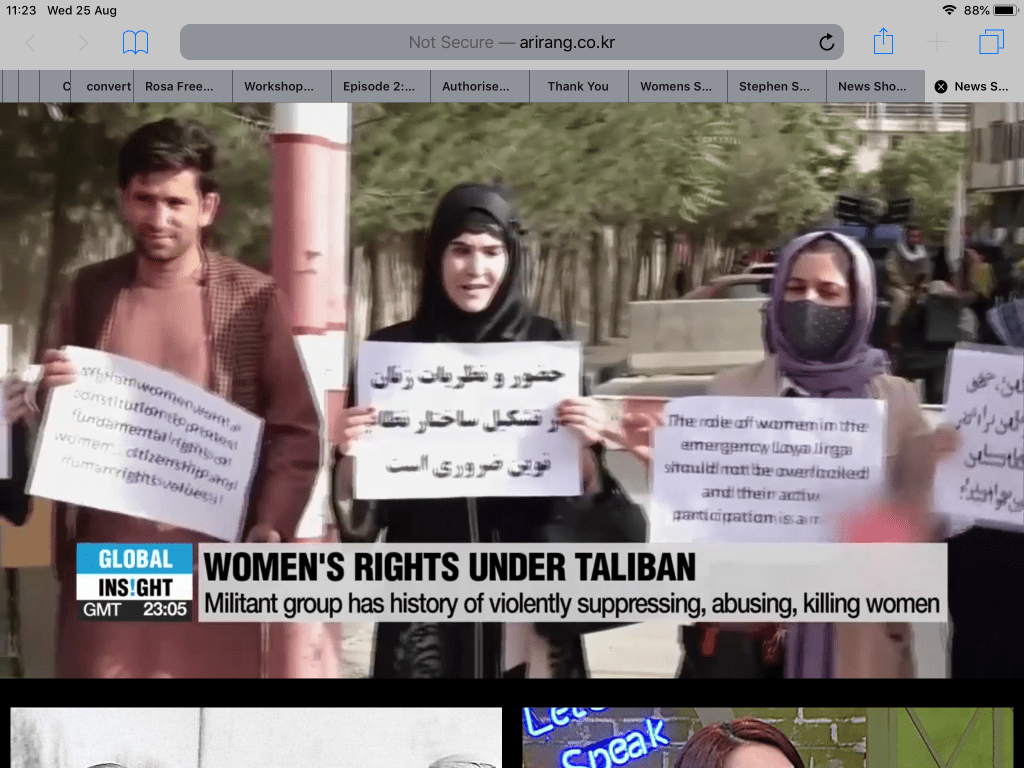 When I got home daughter had sent a link to an interview she gave to Korean TV (NOT North Korean TV!!!!!) last night about human rights and women under the Taliban. Terrifying.