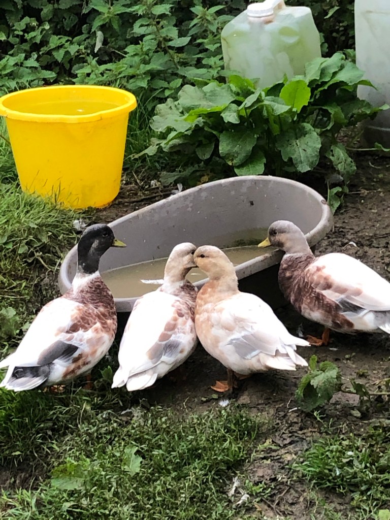 Lucy and Lola slept in the same house as the four other ducks. No blood was shed and all seems well. It’s a bit “us” and “them” but all seems well