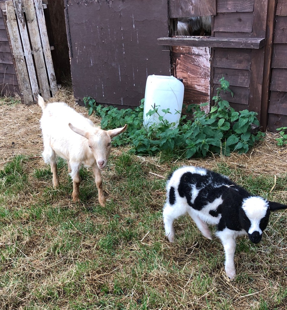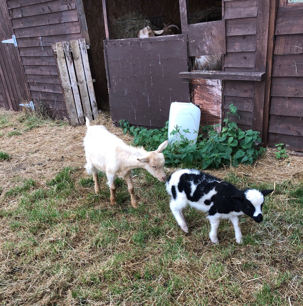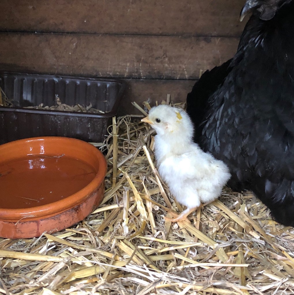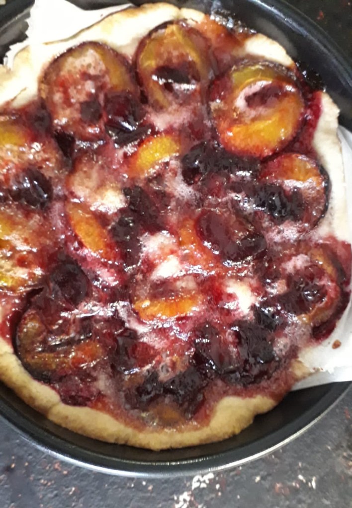 The grey hen is one of the “odd couple”! I can’t resist her so I’ve just given her 8 eggs to incubate underneath her warm feathers The three newly hatched chicks are thriving Bobo (Boaz) and Surprise are good friends One of the plum trees we planted 7 years ago is dripping with purple plums. A friend took plums home on Wednesday night. She just sent me this photograph Flowering mint and cosmos flowers Nigel on my lap as I sit and blog