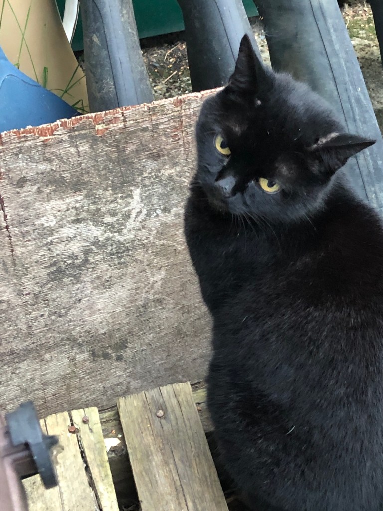 Last evening on my way back from shutting up the Woolmer’s chickens and cat feeding, I spotted an all black cat near their own barn by the road. Might have been one of yours – looked more Nigel’s shape – and had a struggling young rabbit in its mouth. Left it to kill it in peace!