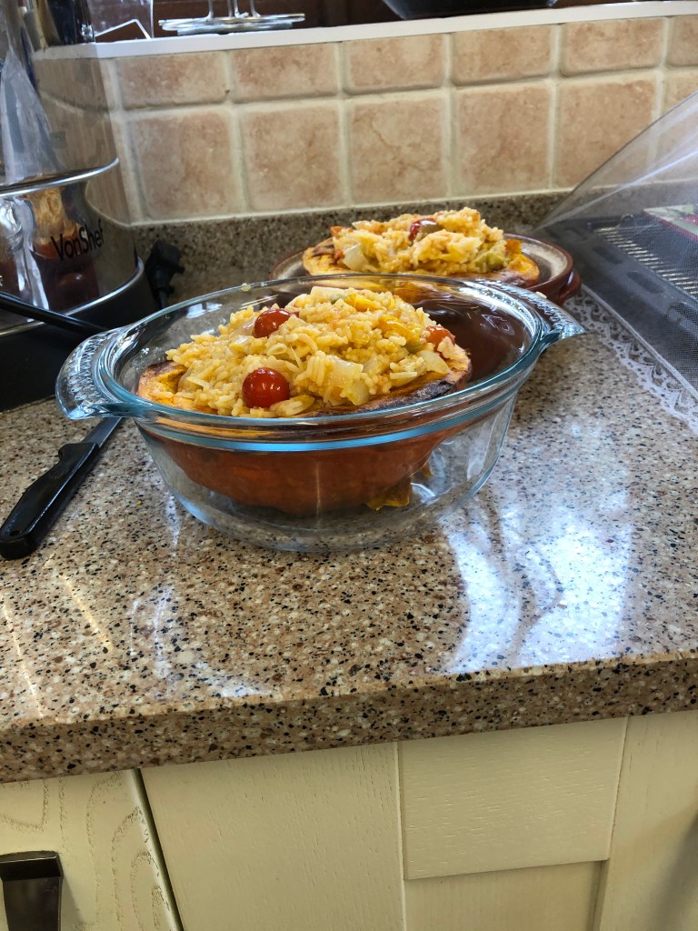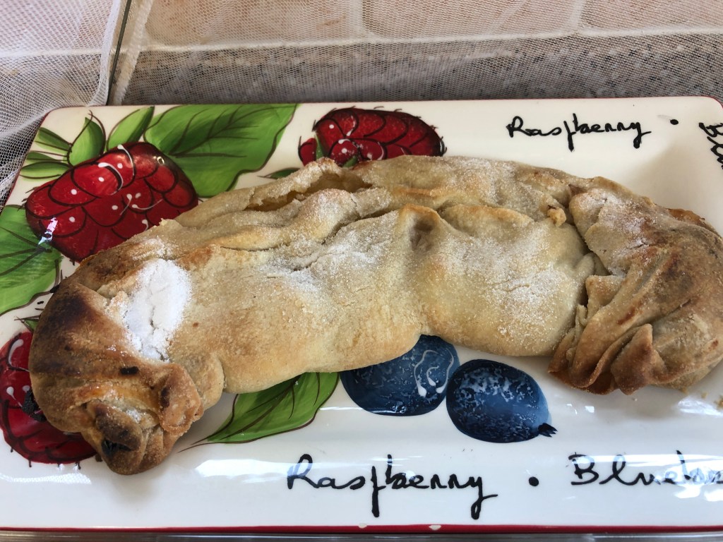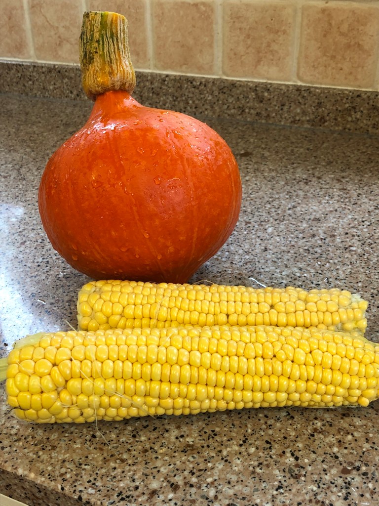 The wind is blowing, the leaves are fallingIn come the last of the sweet corn and an orange uchi kura Cut it, scoop out the flesh and bake to softenThen fill with rice and vegetables and bake again Ready to bake A tomato quiche using a new pastry recipe given to me by a trusted friend I used some more of the pastry to make strudel but I think I need advice to make it look professional