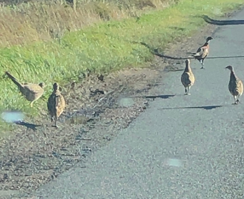 On the way to St Neots a posse of young pheasants zig zagged on the road in front of my car