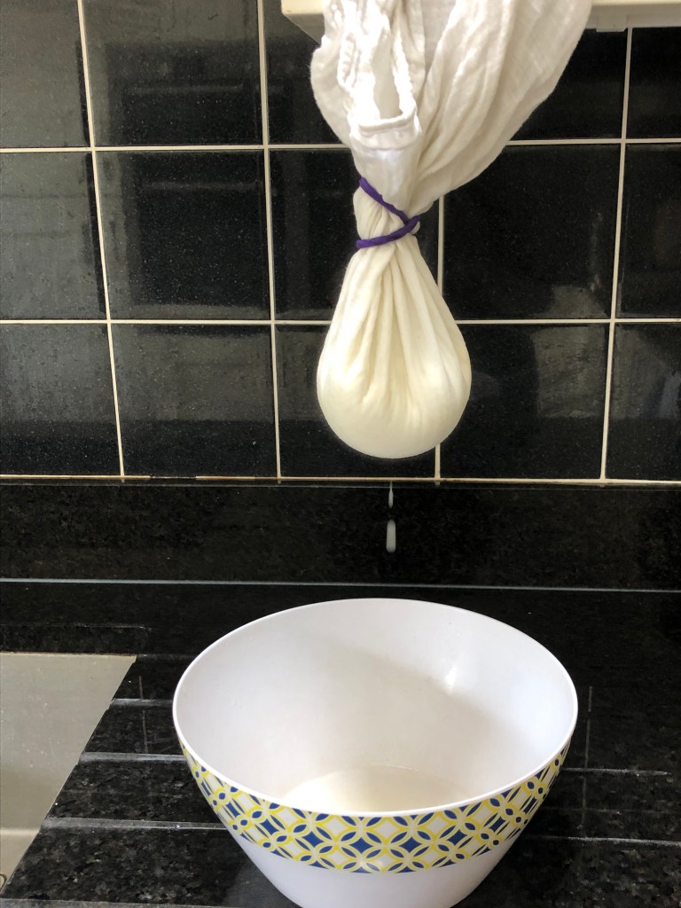 Then it was time to make soft goat cheese. We haven’t been making cheese since April as Willow was pregnant and then birthed and fed twins. The twins don’t need the milk anymore and the bottle fed lamb is nearly weaned. Now it’s our turn to enjoy Willow’s milk.