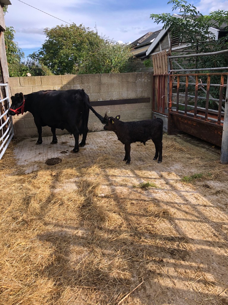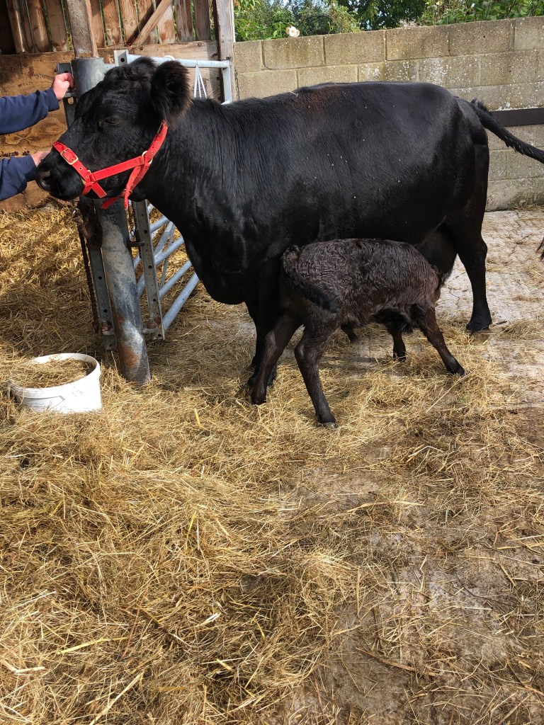 I called in to see the two beautiful calves over the road. The mother of the older calf died suddenly from milk fever. 11 times mother cow Ivy is now suckling her own calf and the orphan.