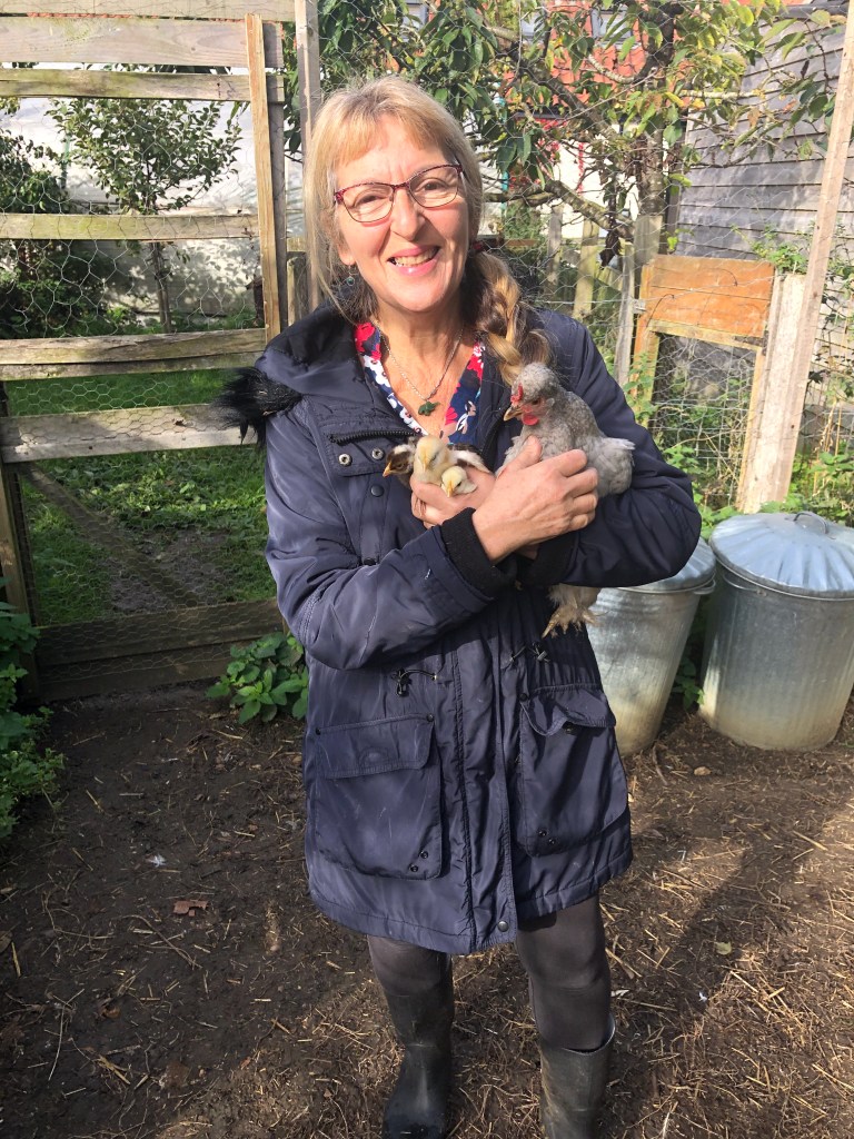 They look delightful! How lovely you look with the little chicks. They all look happy and healthy.