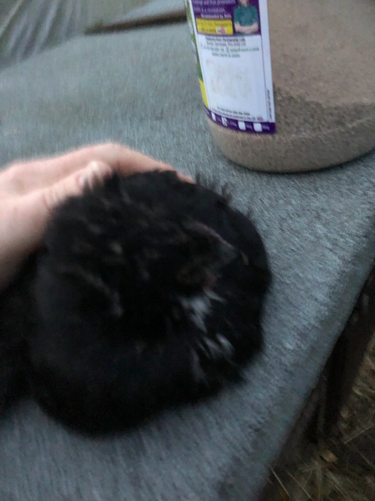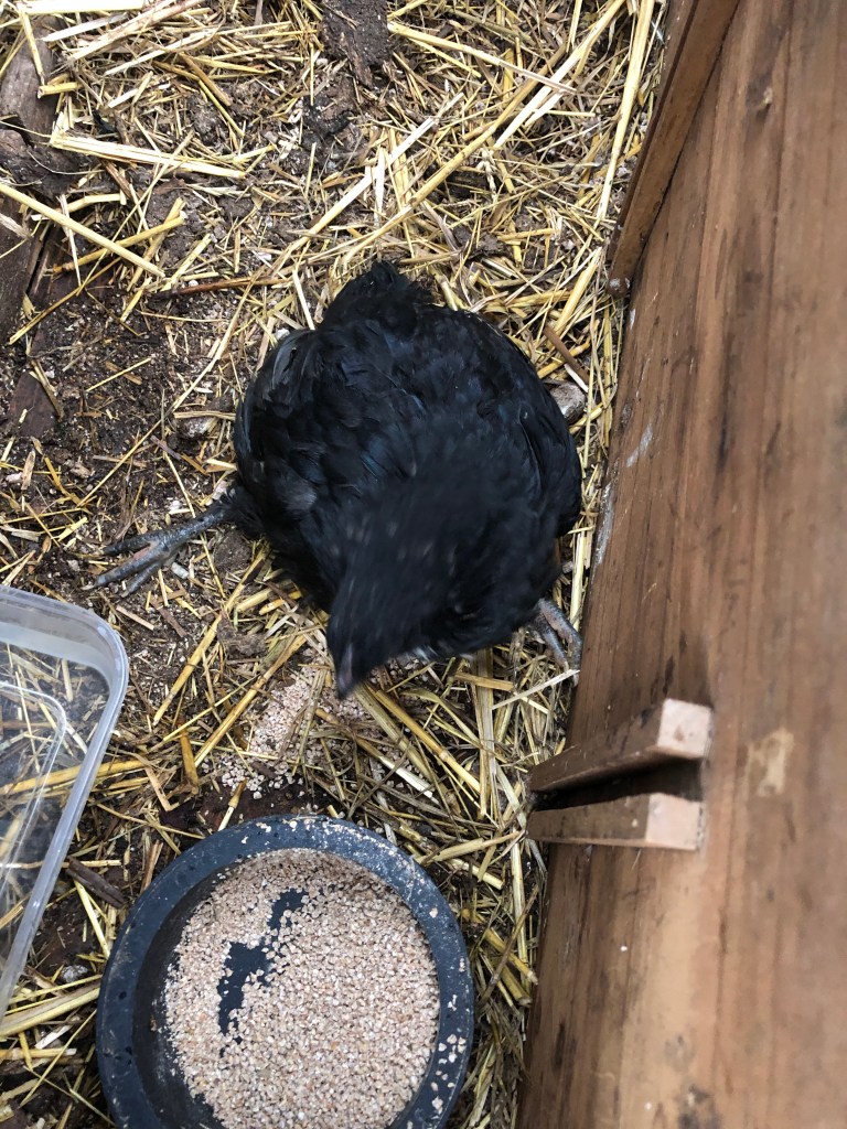 Yesterday I found her on her back in the grass. I righted her, petted her and put her inside the hen house. Just now I found her on her back again unable to move. She is with mother hen and the two other chicks. She has food and water within easy reach