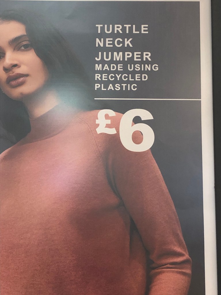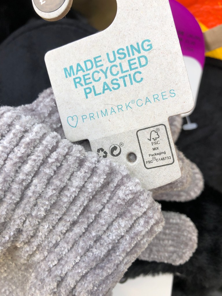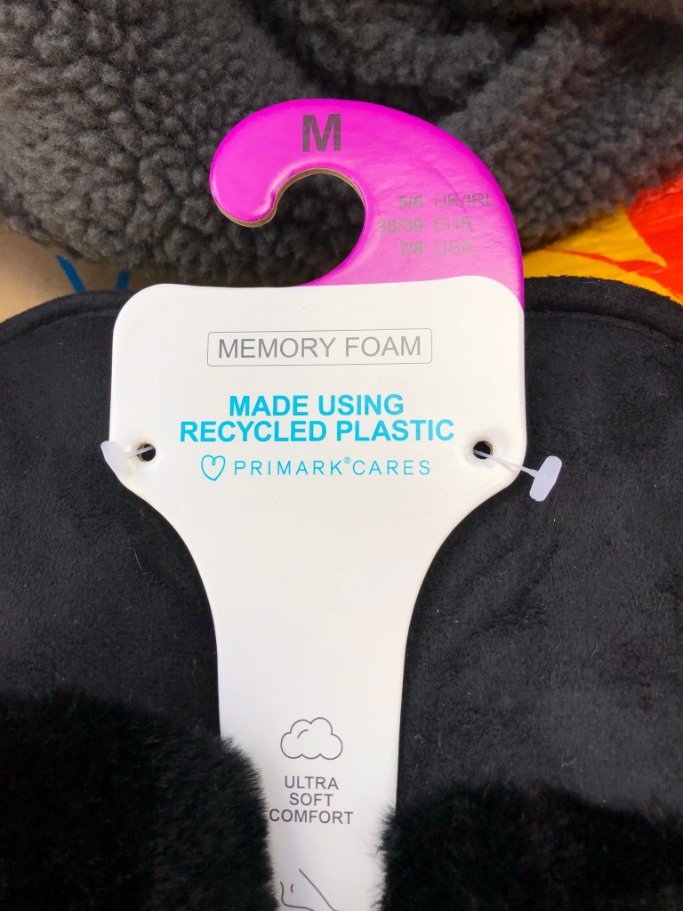 Underneath extremely soft blankets made from recycled plastic. I tried to find similar blankets in the UK online. Couldn’t find them. I thought that they would make ethical and lovely baby gifts. Today, in my beloved Primark, I spent £16 and four of my six items were made from recycled plastic