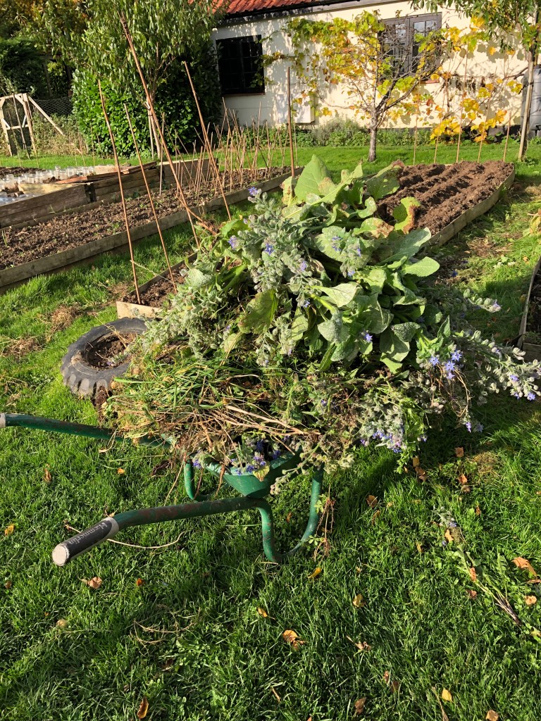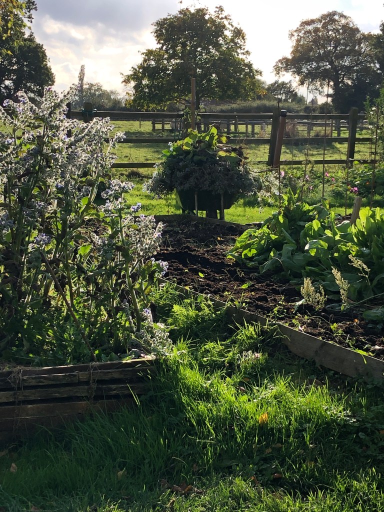 Now I’m home and the sun is shining and I’m pulling up the borage so that Jeremy can sow more peas and onions.