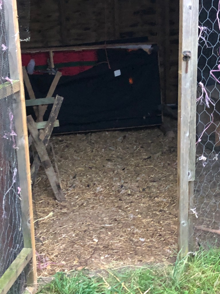 I’m keeping all the birds in the chicken runs inside their houses while I prepare a “safe place” for them to live