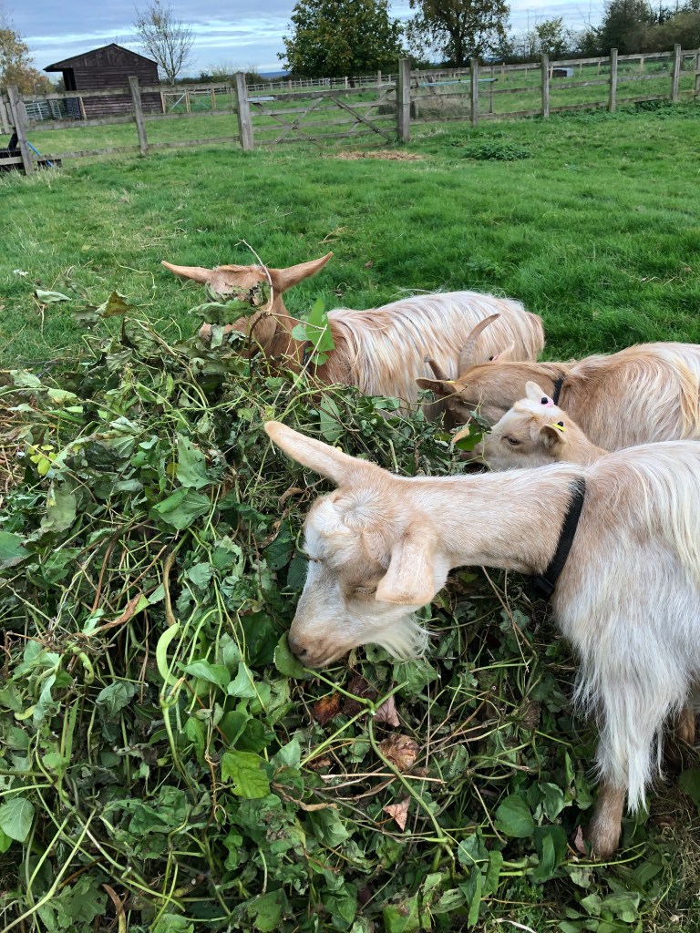 As we continue the autumn “tidy up” there are wheelbarrows full of bean plants and squash plants. We will have to ration the helpings or risk bloated goats!