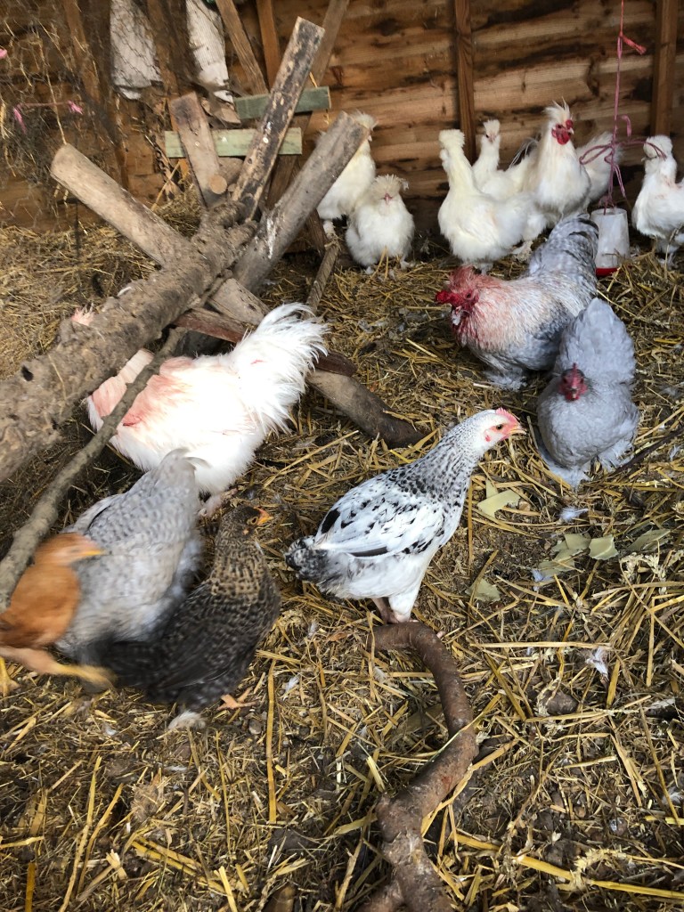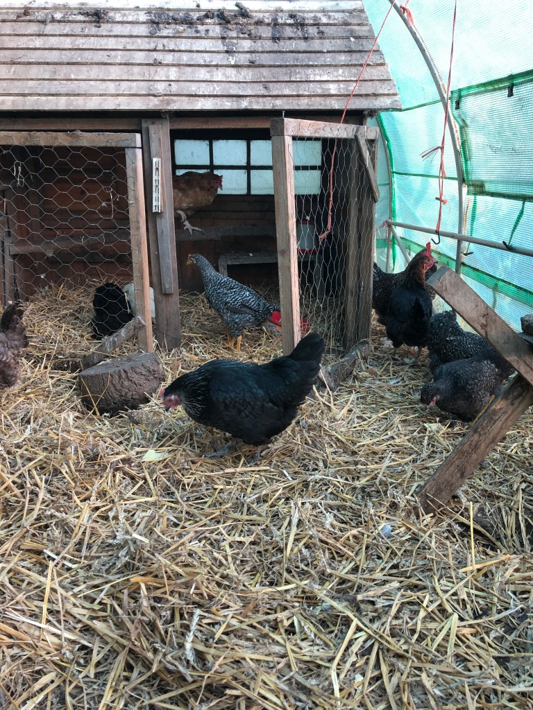 Sadly, in the quail barn (so called when we housed quails there two or three years ago) there have been bloody battle between two cockerels – a Silkie and a grey Bantam. Let’s hope they settle down and can share their enforced incarceration until we get the avian flu all clear from DEFRA.