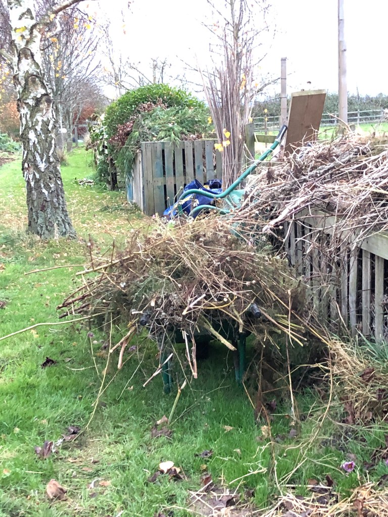 Cutting down the Cosmos stems that finally succumbed to the icy weather of the past few days