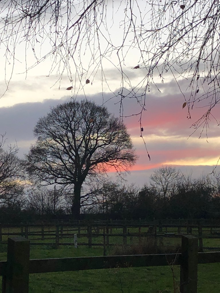 The day started with a pink and red sky and as the sun descended there was pink and red and blue and grey streaks amongst the clouds