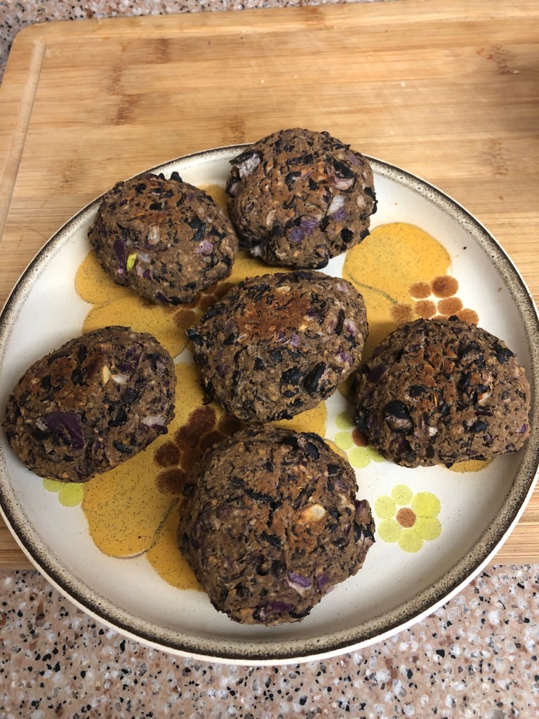 And here are some black bean burgers. With both recipes I omitted the ingredients I was missing and substituted others or left them out all together.