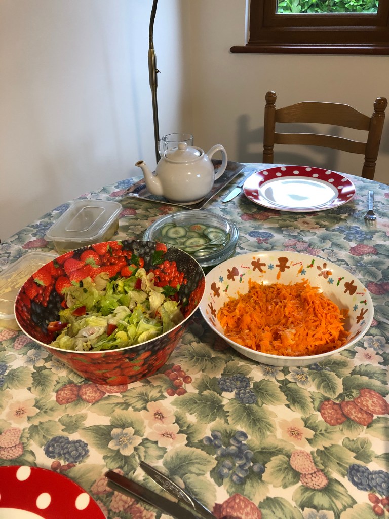 My dear husband made me a delicious breakfast of omelette and salads, toast and butter and coffee. What more could I want? Actually I don’t have a wish list and for that I feel extremely blessed. I hope he does too.