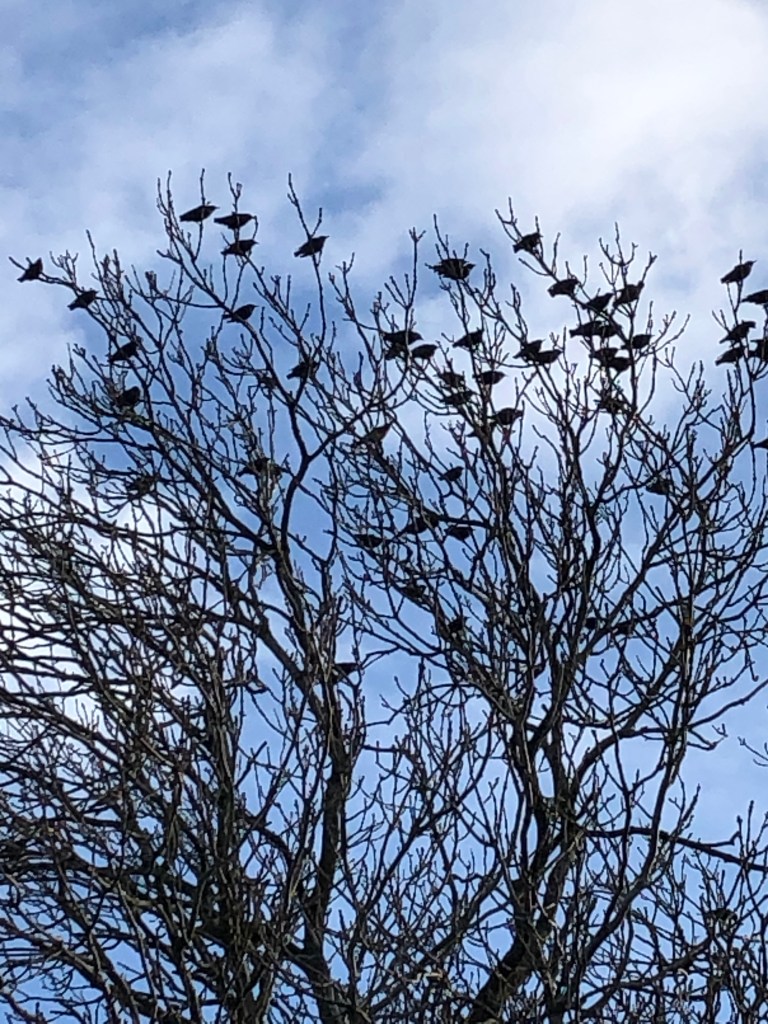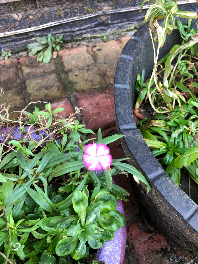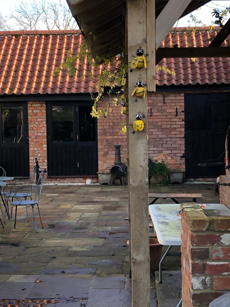 A flock of birds (but I can’t identify the birds, anyone know?) in a roadside treeViews of St Denys church taken from Mill RoadAnother viewA sign goes up (daughter bought this for Jeremy’s birthday)And below a set of bees (bought for Jeremy by Dianne) has been fixed to a post in the courtyard In a tub in the front of the house some Sweet William is flowering – crazy