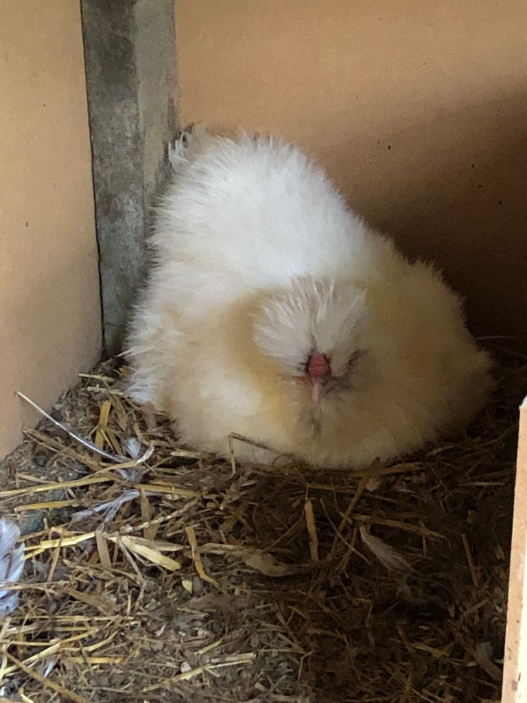 Mrs Silkie was sitting in the nest box when I went to the quail barn at midday. I think she’s laying an egg. I’ll find it later. Good girl!