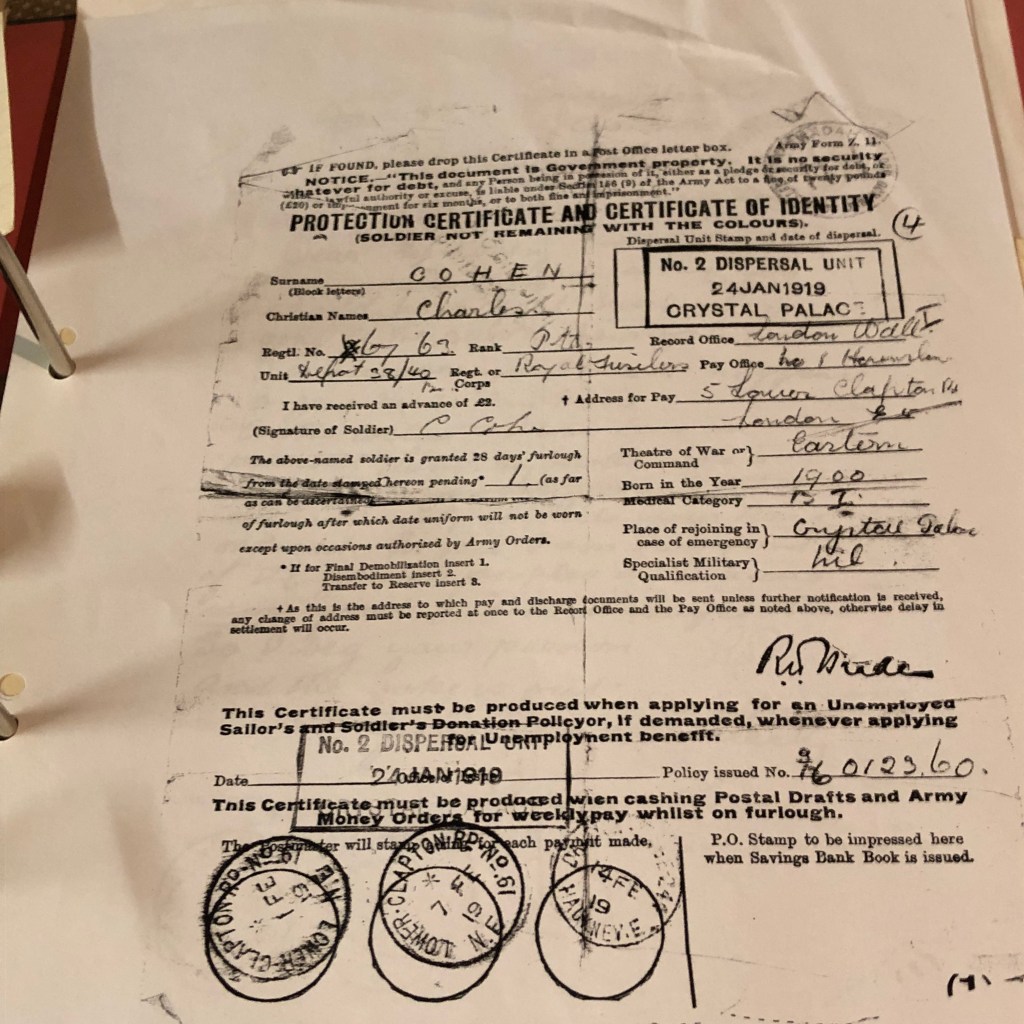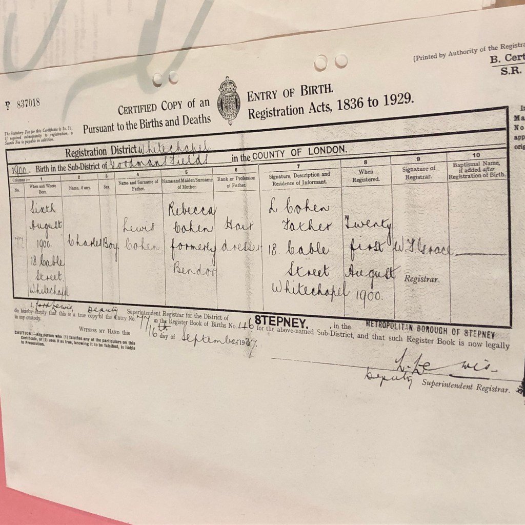 Tonight marks the yahrzeit of my lovely Grandpa Charles, my mother’s father. His parents came to these shores from Vilna, Lithuania and he was born in Cable Street in 1900