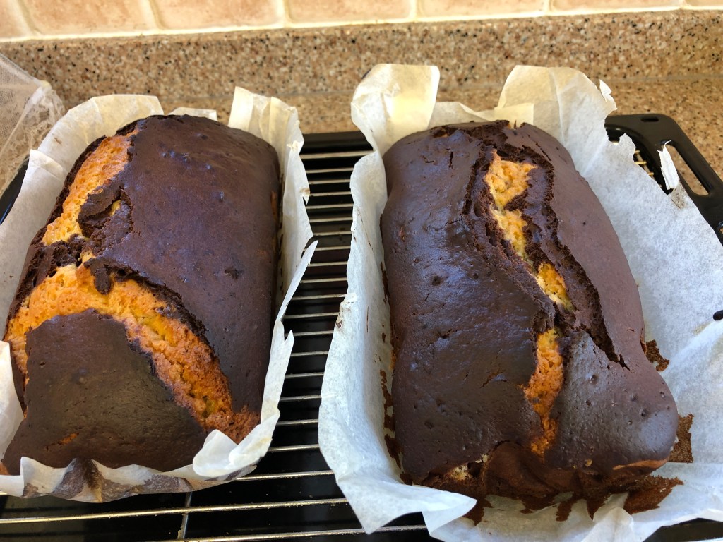 A birthday cake for granddaughter (now in the freezer to be defrosted and iced on Sunday). Two marble cakes
