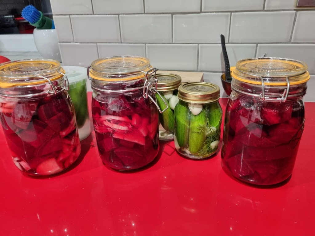 Daughter took home Gables beetroots yesterday and she bought some small cucumbers from a local Polish shop near where she lives. Tonight she impressed us with this photo