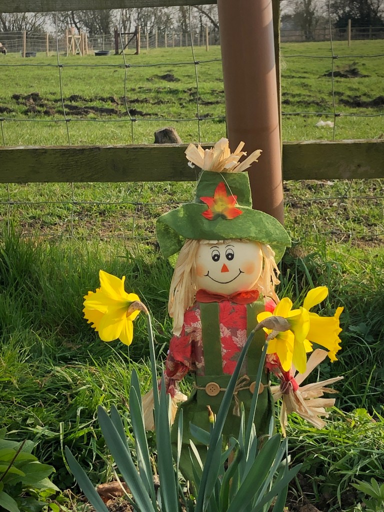 The small scarecrows have come out of their winter hibernation in the shed.