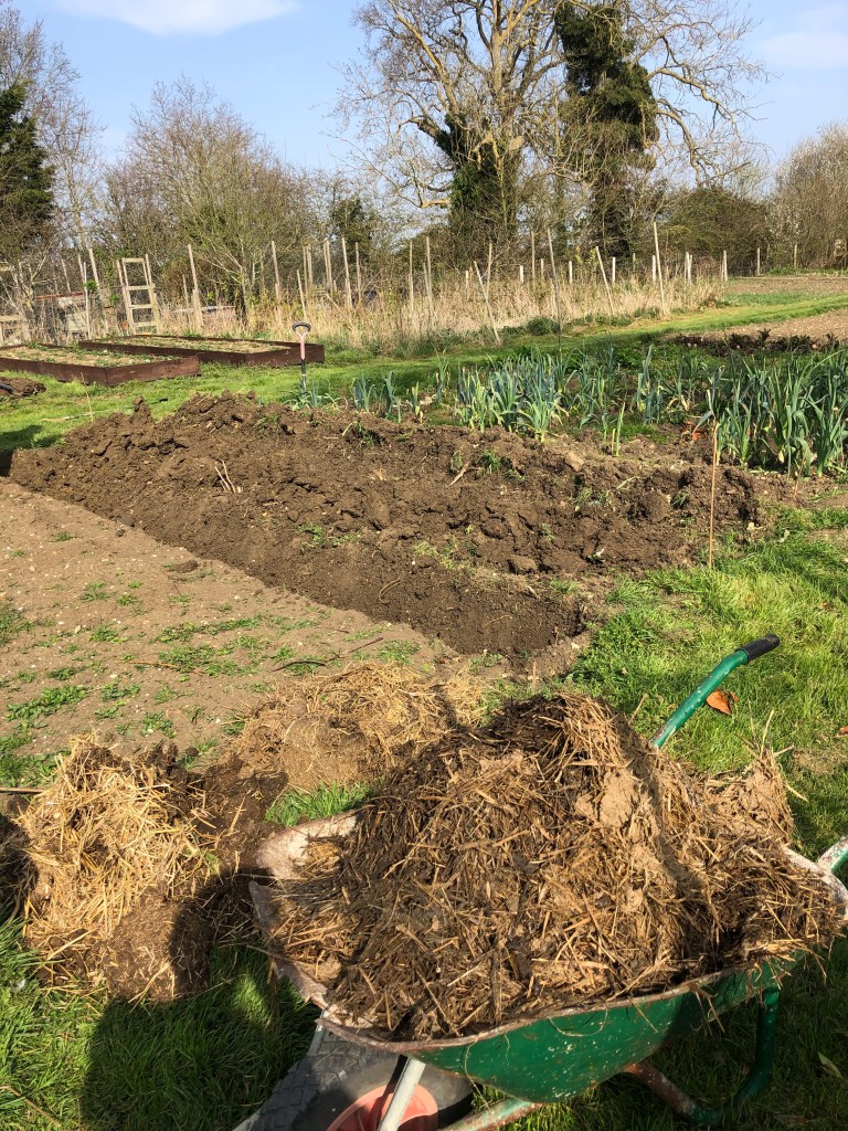 March 28, 2022 by gfreedman2013 It’s a joint effort but I have the easier task by far I’ve cleaned out the duck house and several barrow loads of straw snd manure from the polytunnel Jeremy is digging trenches and planting potatoes. Heavy work Share this: Share on X (Opens in new window) X Share on Facebook (Opens in new window) Facebook Like Loading... Related