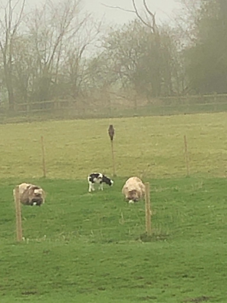 We have seen the buzzard nearly every day for some time now. He likes to sit on a fence post and later to roost in the oak tree at the far side of the field